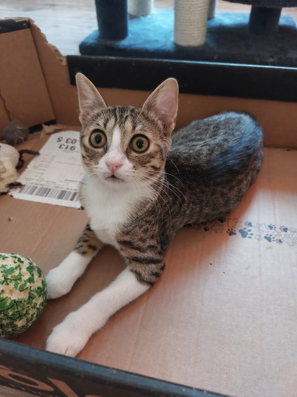 Caty wurde als junges Kätzchen gerettet und lebt derzeit auf einer Pflegestelle, wo sie gelernt hat, Menschen zu vertrauen und sich zu entfalten.