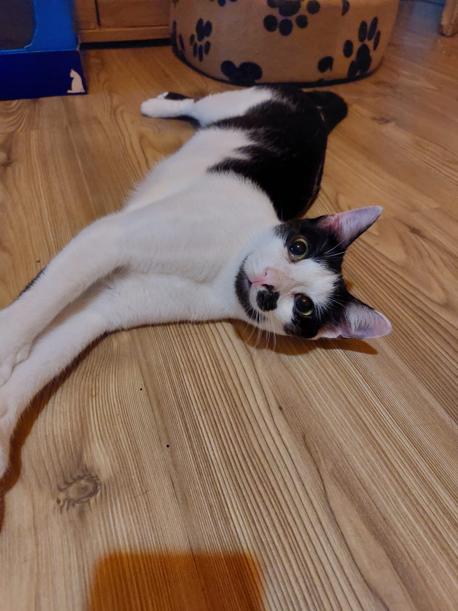 Eigenschaften: braucht anfangs etwas Zeit, dann sehr lieb, sehr menschenbezogen, verspielt, eher ruhig, mega verschmust, neugierig, braucht Artgenossen um glücklich zu sein, mag Kinder und Hunde