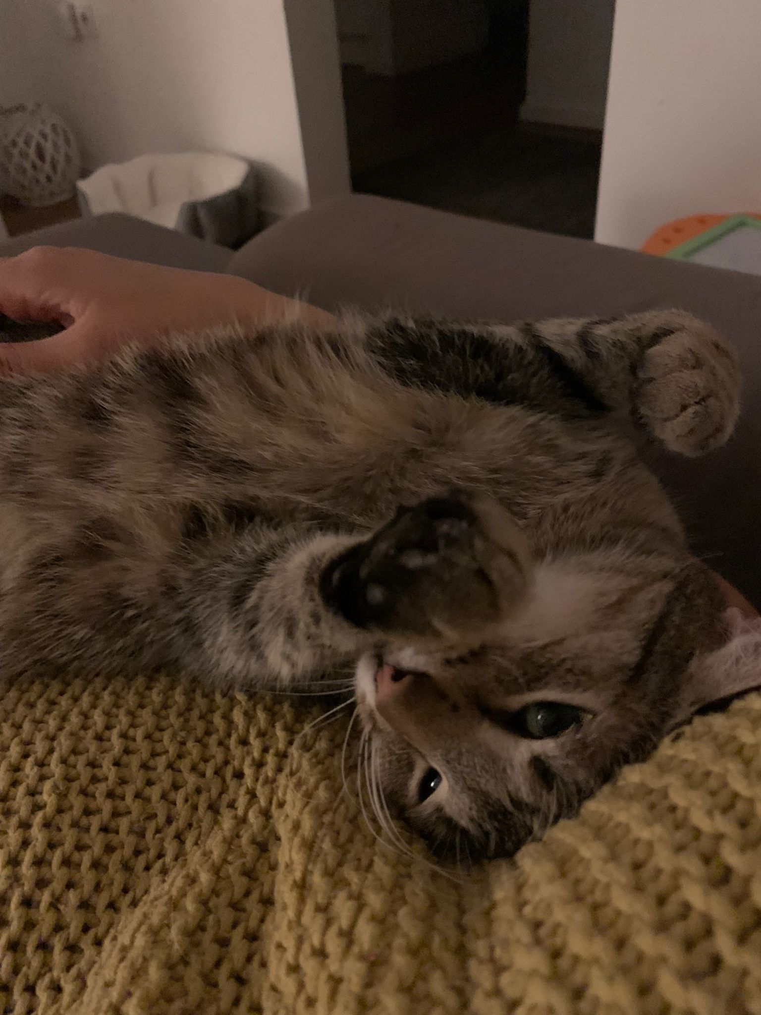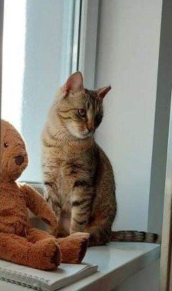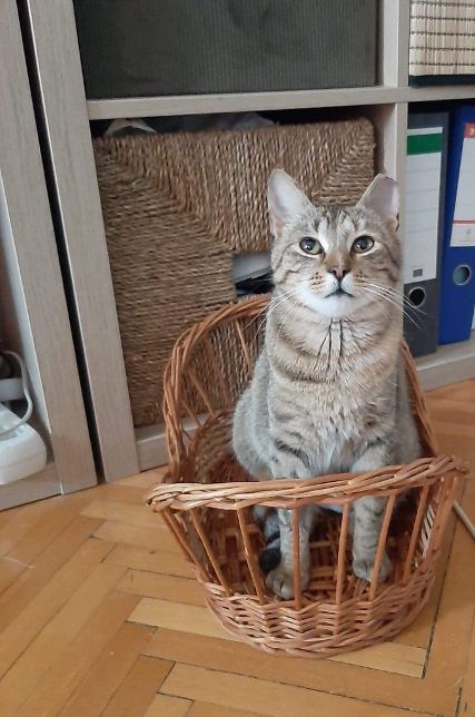 Eigenschaften: braucht Zeit um anzukommen, dann sehr lieb, sehr menschenbezogen, sehr verspielt, verschmust, neugierig, sozial mit Katzen