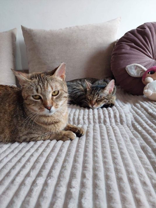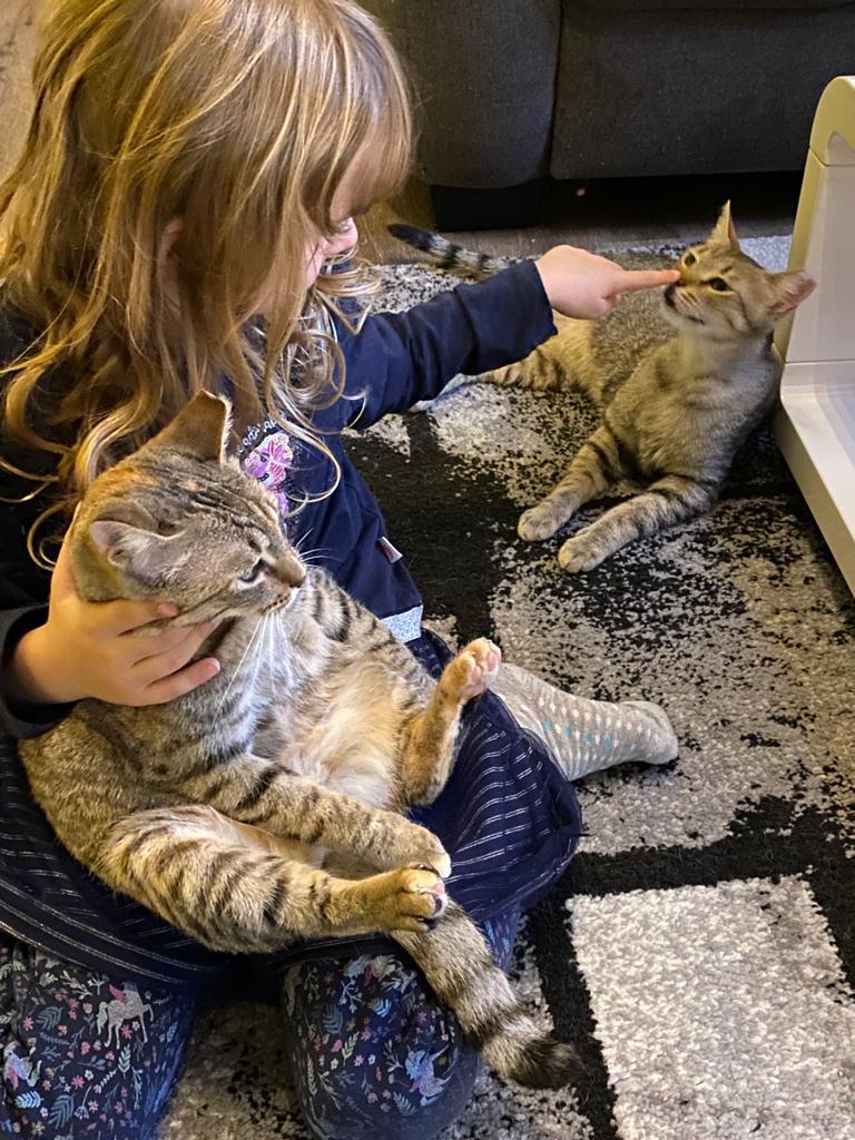 (01.05.2021). Die beiden sind auf ihrer lieben Pflegestelle so richtig aufgetaut. Sie geniessen es mit den anderen Katzen der Pflegestelle zusammen zu sein und auch mit ihrem Menschen zu schmusen.