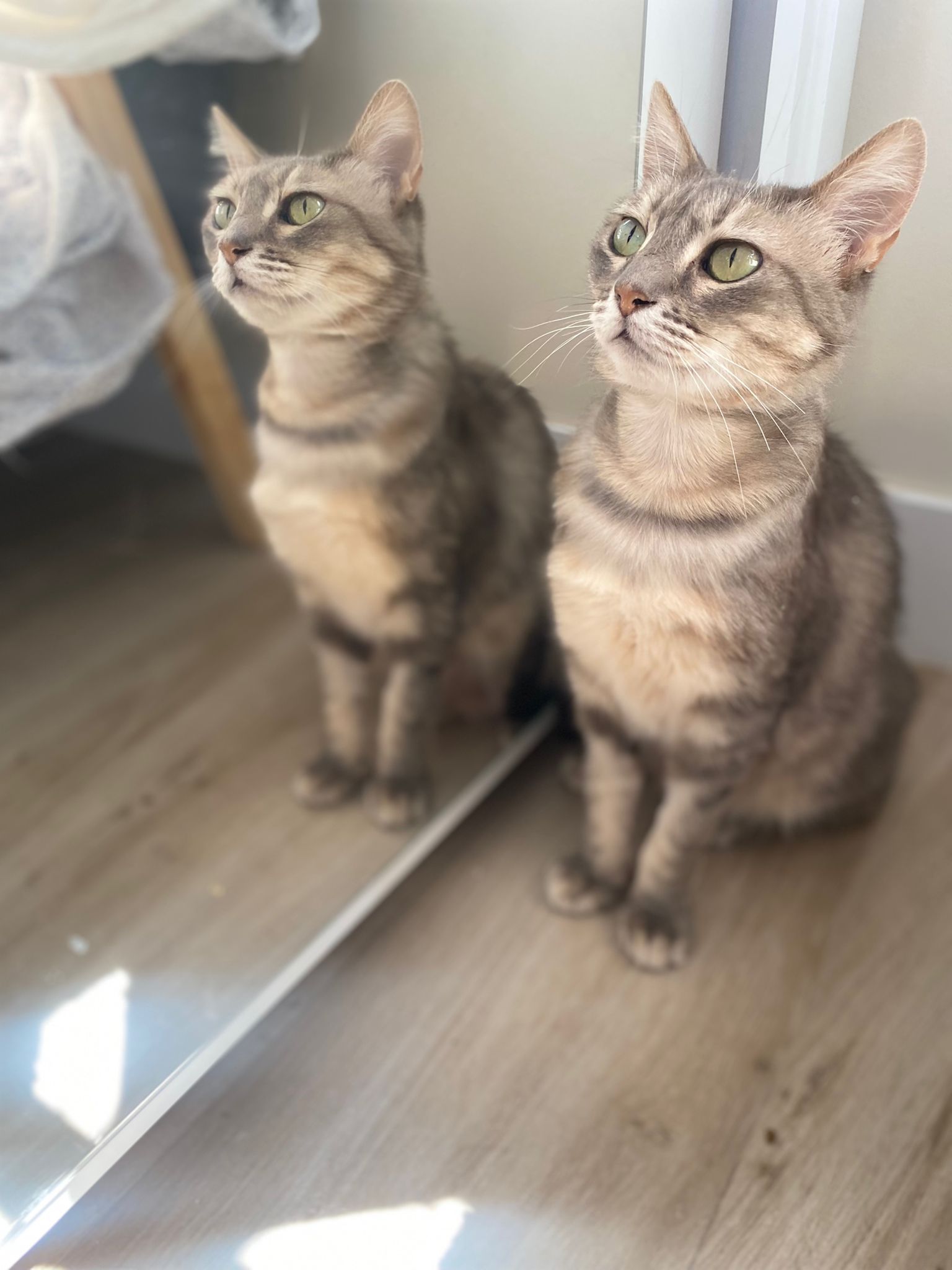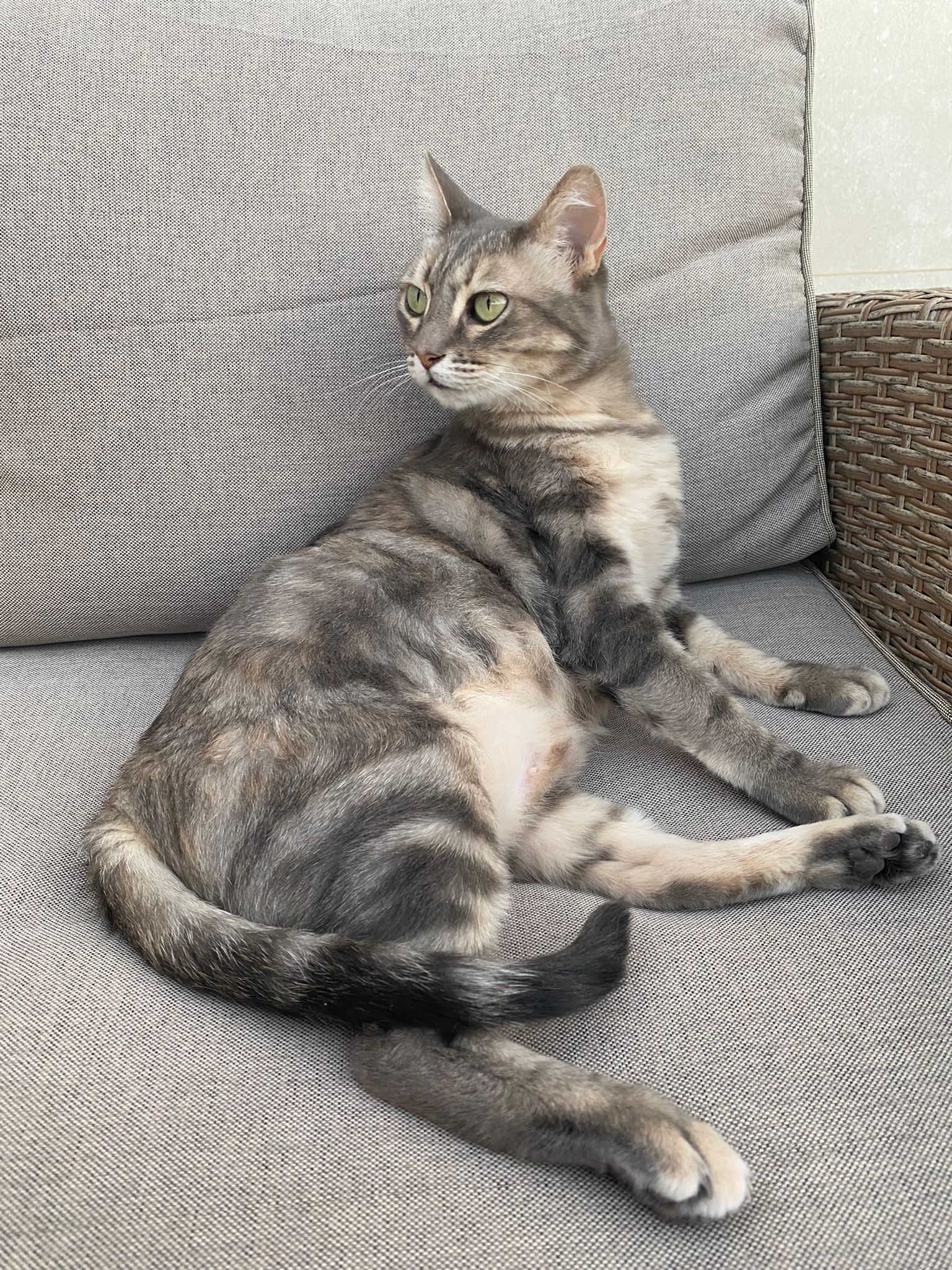 Gala, geboren am 14.02.2019, mit der besonderen grau/beigen Fellfarbe ist eine liebe und ruhige Kuschelmaus, die aber auch Spielphasen hat.