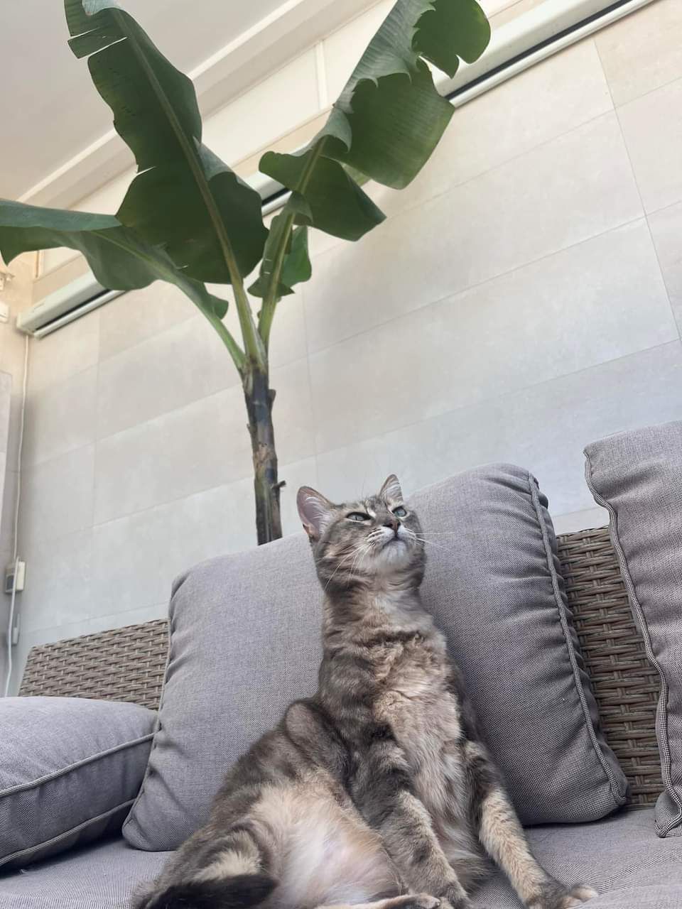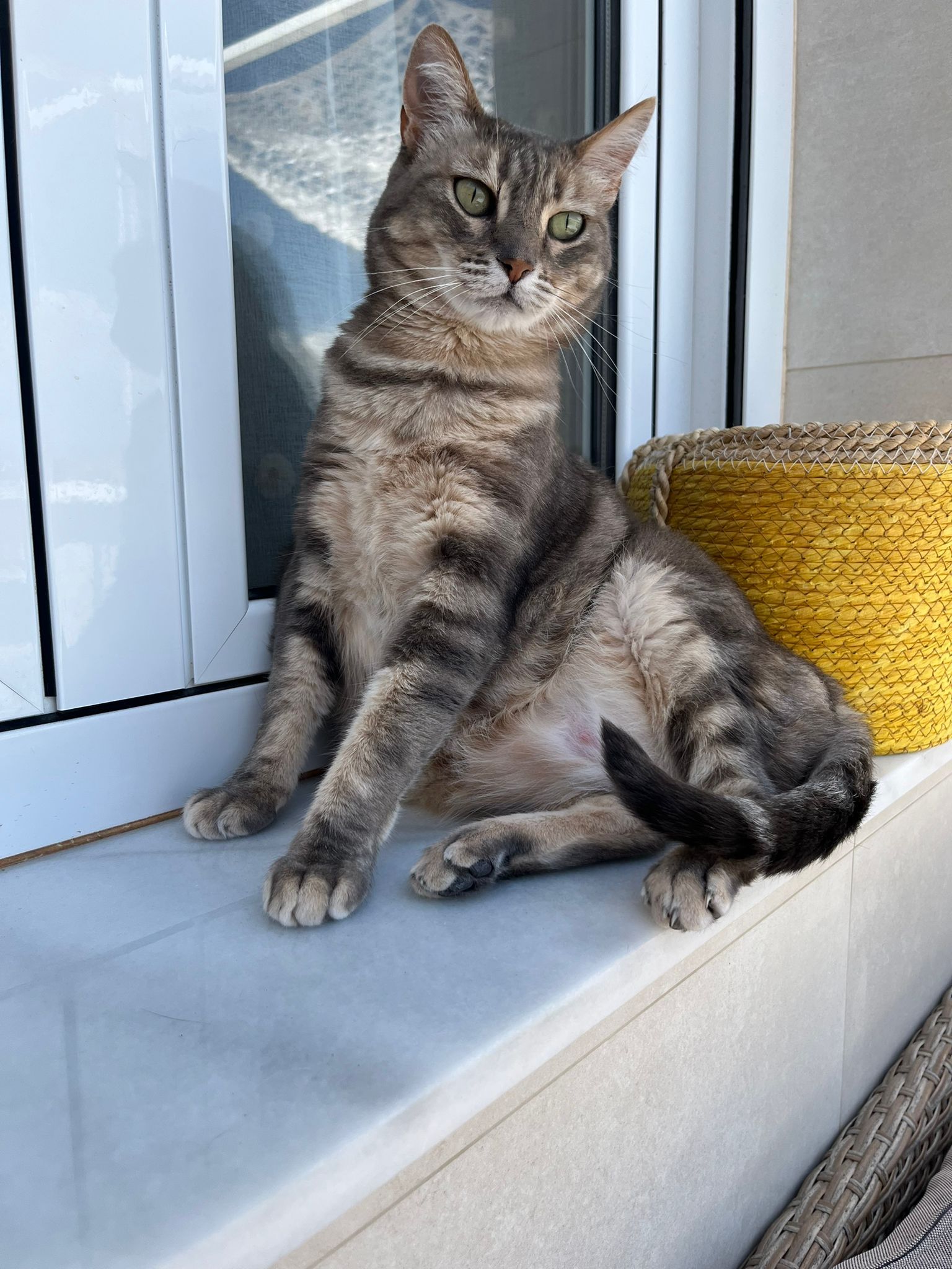 Zufällig wurde Gala allein bei den Gewächshäusern gesehen, als wir sie riefen kam sie sofort und bettelte um Liebe und Futter - sie hatte also definitiv einmal ein Zuhause und wurde ausgesetzt.