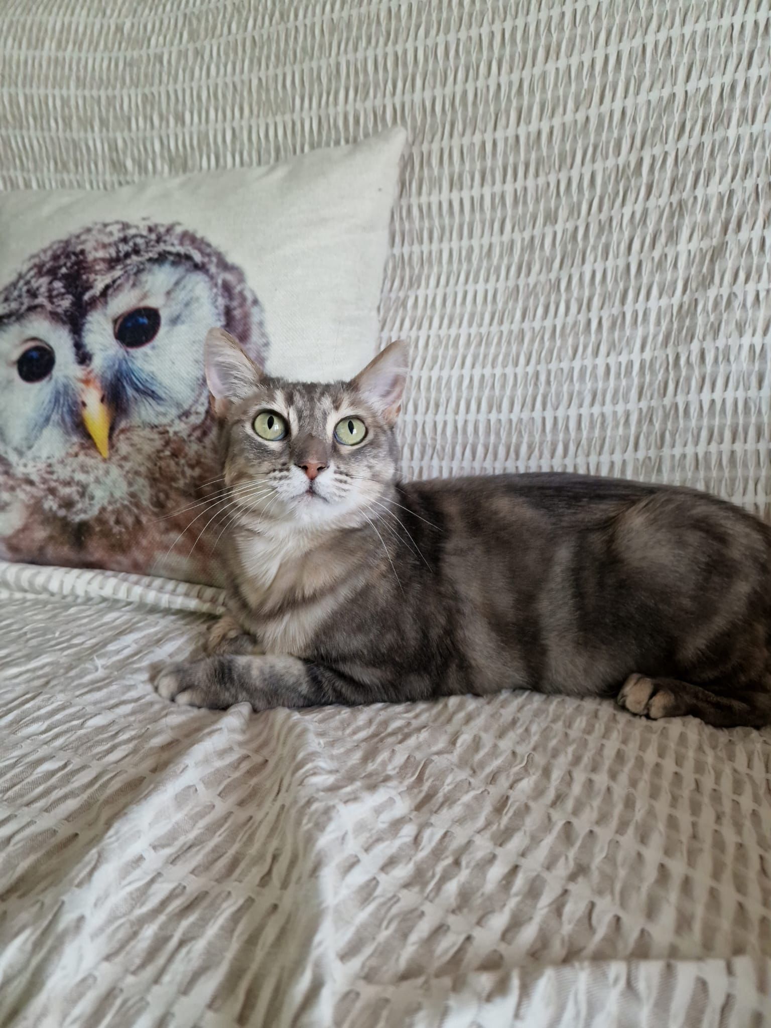 Mit Artgenossen ist Gala sozial, bleibt aber eher auf Abstand, es war alles ein bischen viel im letzten Jahr, sie muss zur Ruhe kommen. Gala braucht aber auf jeden Fall einen Katzenkumpel, aber es muss ein ebenfalls ruhiger, nicht dominanten Kumpel sein, der auch nicht gerade spielwütig ist. Sollte im neuen Zuhause allerdings rund um die Uhr jemand Zeit für Gala zum Kuscheln und Spielen haben, könnte sie vielleicht auch allein leben.