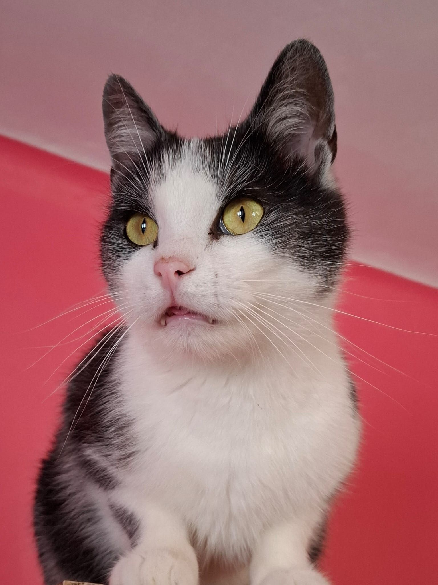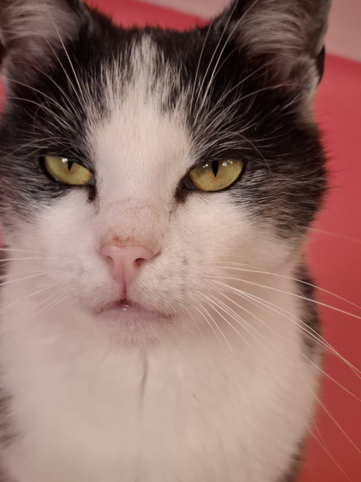 Er ist selbstbewusst, aber sehr freundlich und sozial mit anderen Katzen.
