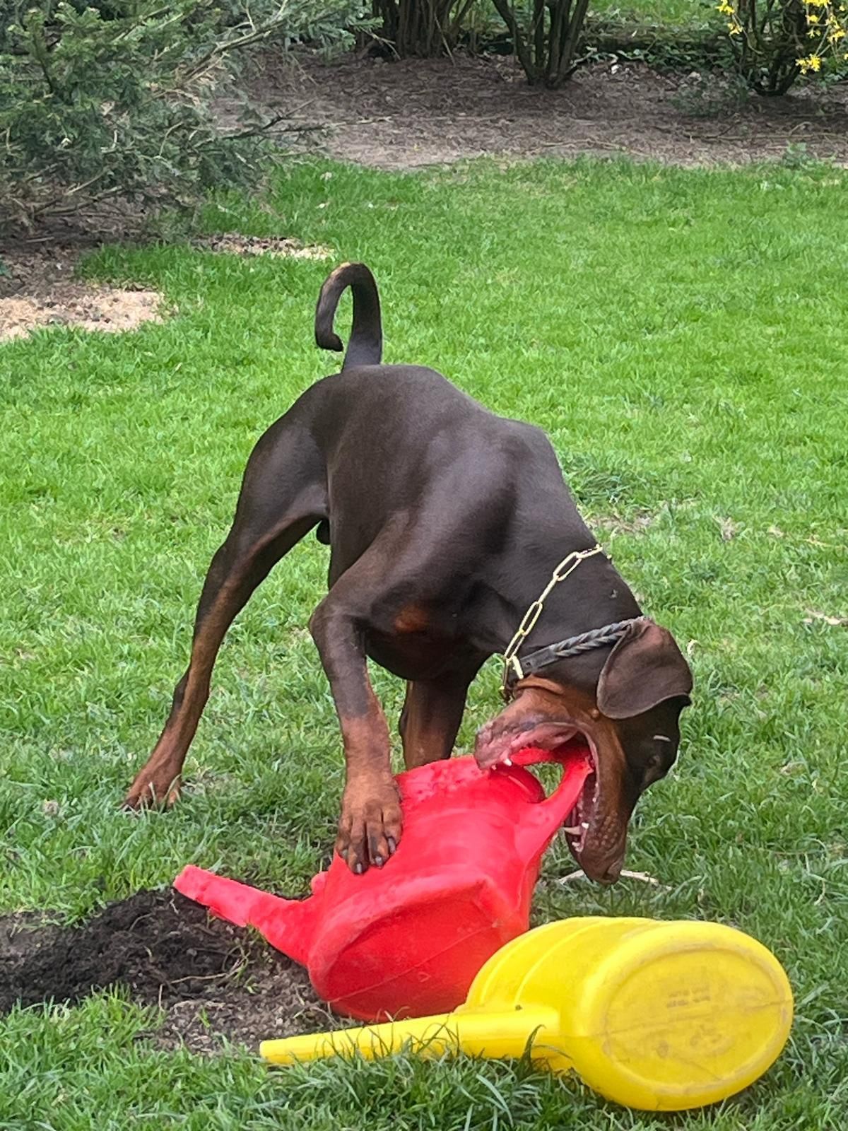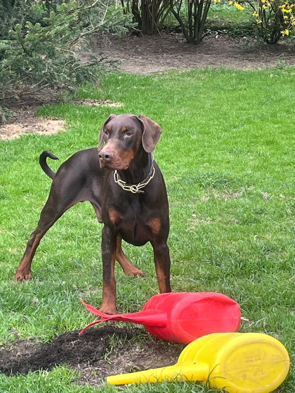 Jazz ist ein bildschöner, reinrassiger Dobermannrüde, geboren im Februar 2023. Er bringt alle typischen Eigenschaften seiner Rasse mit: loyal, anhänglich, temperamentvoll – und ein echter Clown, wenn er mit seinen Bezugspersonen zusammen ist.