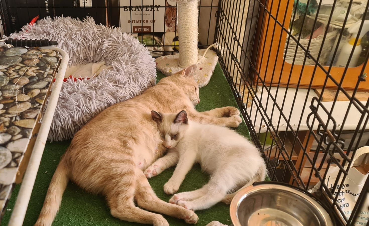 Dann aber hatten wir Glück und konnten Nectarinas kleines Kitten ebenfalls finden, so dass wir das süße Duo aufnehmen konnten.