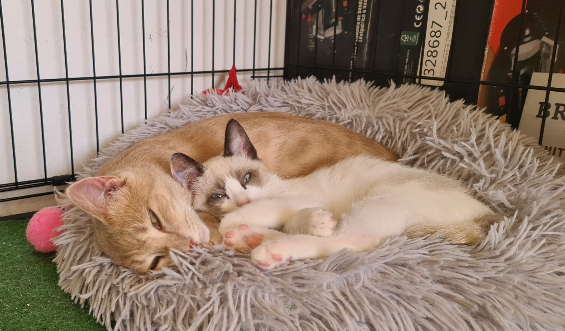 (Siam-Snowshoe-Mix, geb ca. 04.09.2022) sind ein wunderschönes, superliebes und unkompliziertes Traumpärchen.