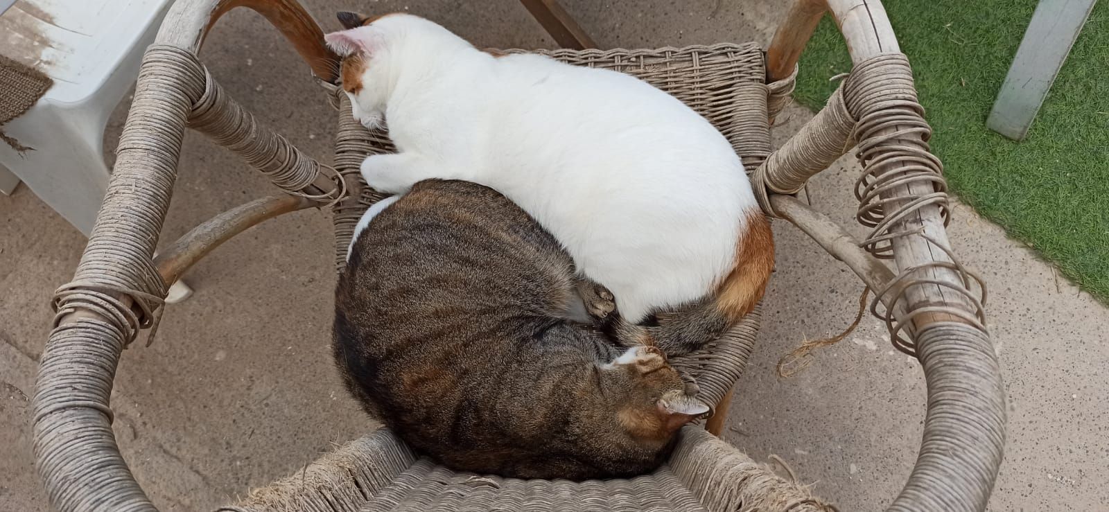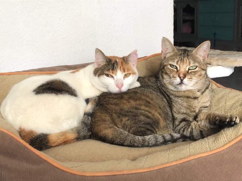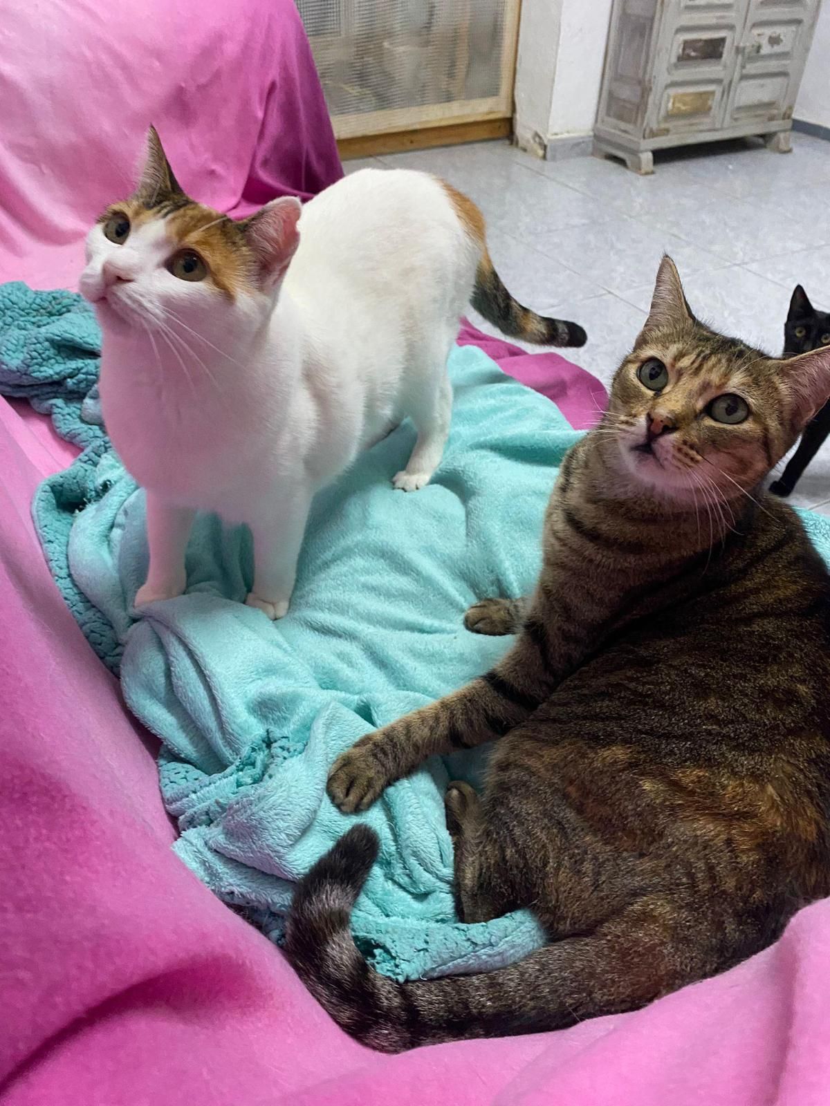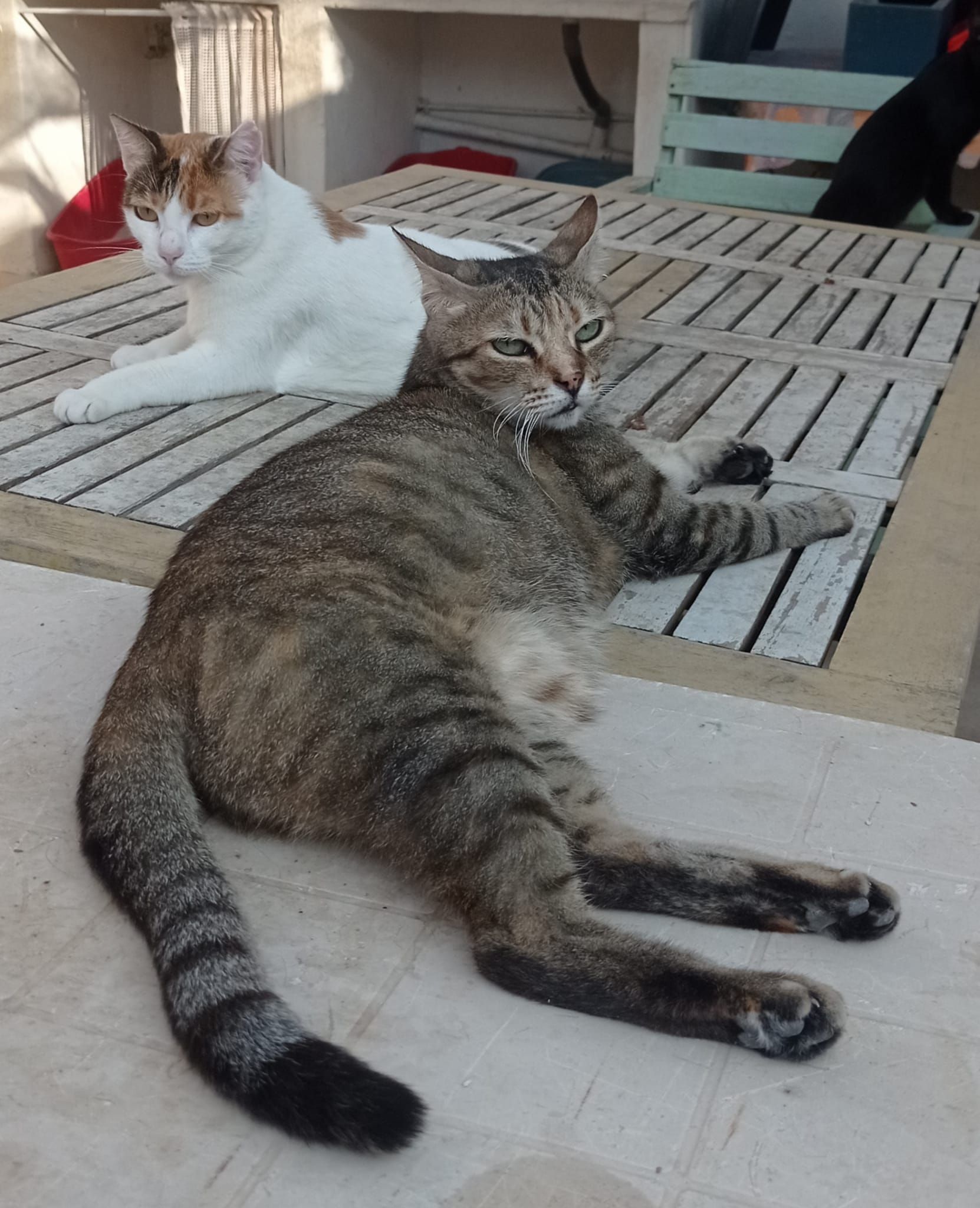 Mari haben wir 2021 in die Casa aufgenommen. Sie lebte in einer gefütterten Kolonie sehr gefährlich direkt an einer Schnellstraße, deshalb haben wir sie aufgenommen. Nachdem Dakota ihre Emma verloren hatte, hat Mari sich ganz langsam und hartnäckig an Dakota "herangeliebt". Und mit Erfolg, denn heute sind beide unzertrennlich - wo die eine ist, ist die andere nicht weit. Deshalb dürfen die beiden zusammenbleiben und sollen gemeinsam in ein neues Leben im eigenen Zuhause starten können.