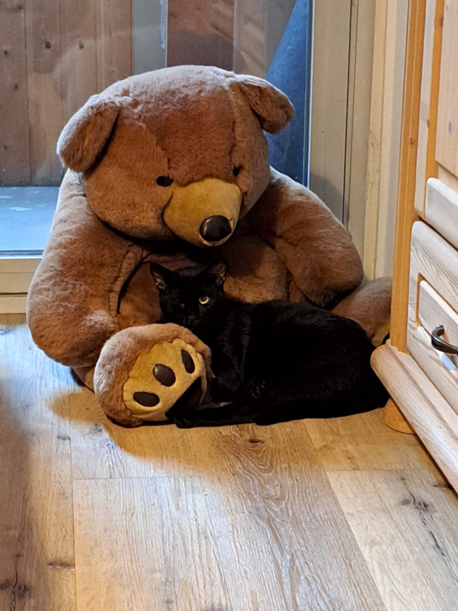 Sie leben zusammen mit mehreren anderen Katzen und verstehen sich super mit jedem von ihnen.
