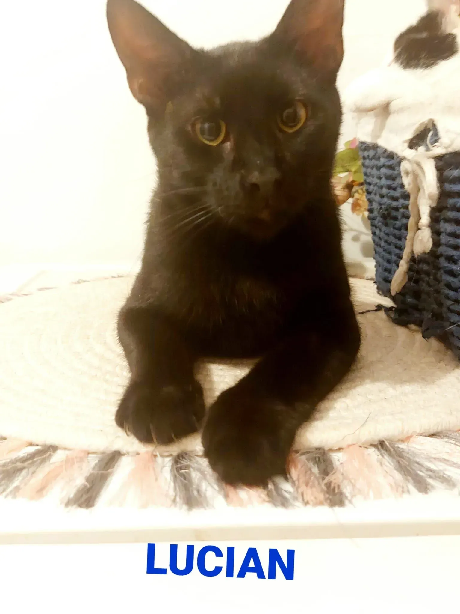 Lucian ist eines von 4 Kätzchen, die in einer Garage lebten. Der Garagenbesitzer wollte sie dort nicht haben.