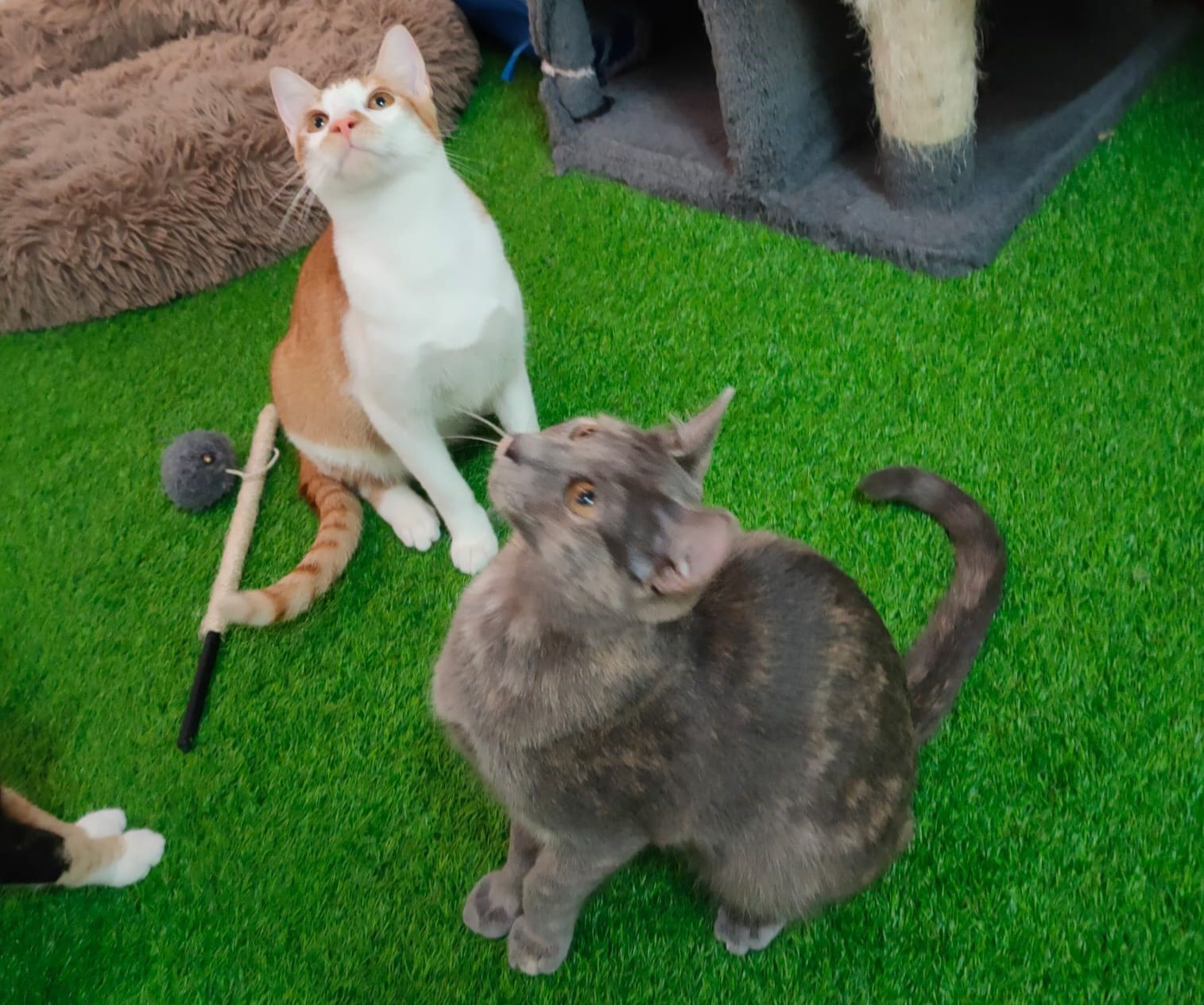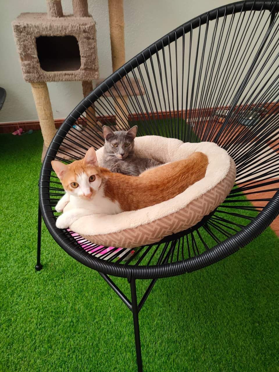 Beide sind aktiv und spielen gern, wobei Apolo der aktivere von beiden ist, etwas Platz sollte also vorhanden sein. Beide sind supersozial mit anderen Katzen und sehr gut verträglich zumindest mit kleinen Hunden. Kinder sehen wir im neuen Zuhause erst ab Teenageralter.