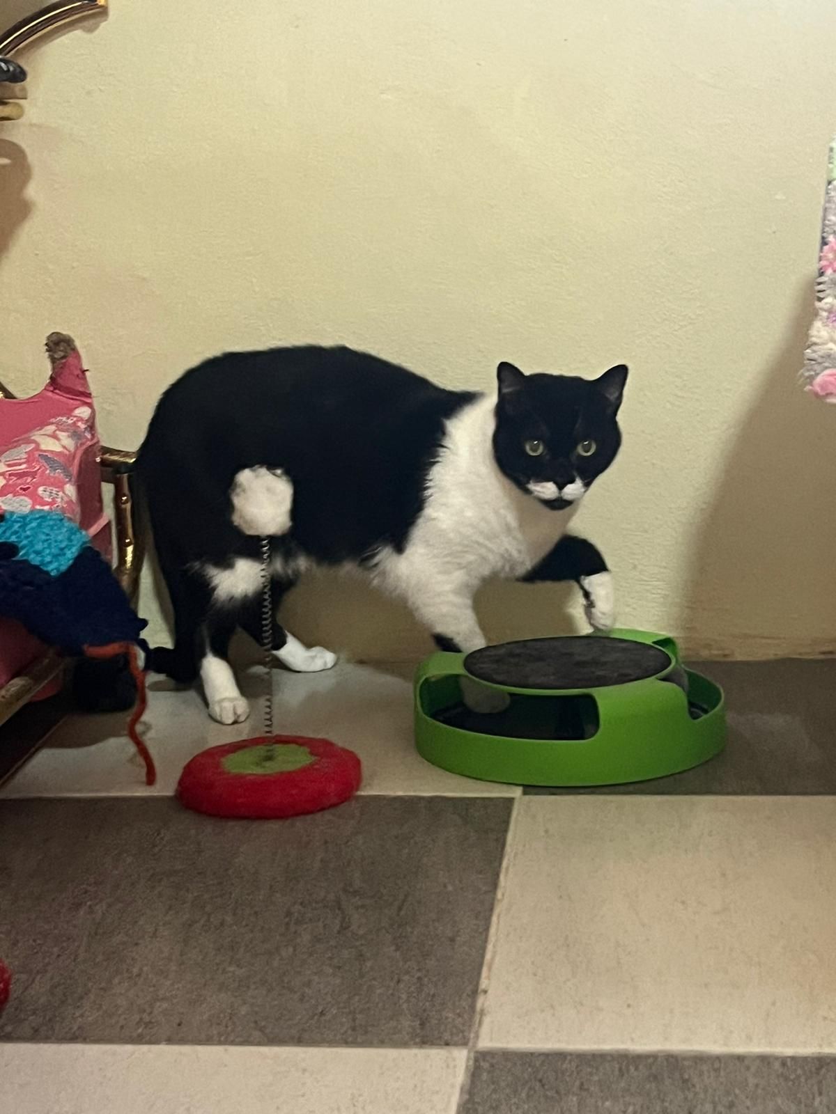 Wir denken, in ruhigerer Umgebung und mit Zeit und Geduld kann auch Emma später gestreichelt werden. Besonders liebt Emma ihre kleine Kugelbahn mit Ball.