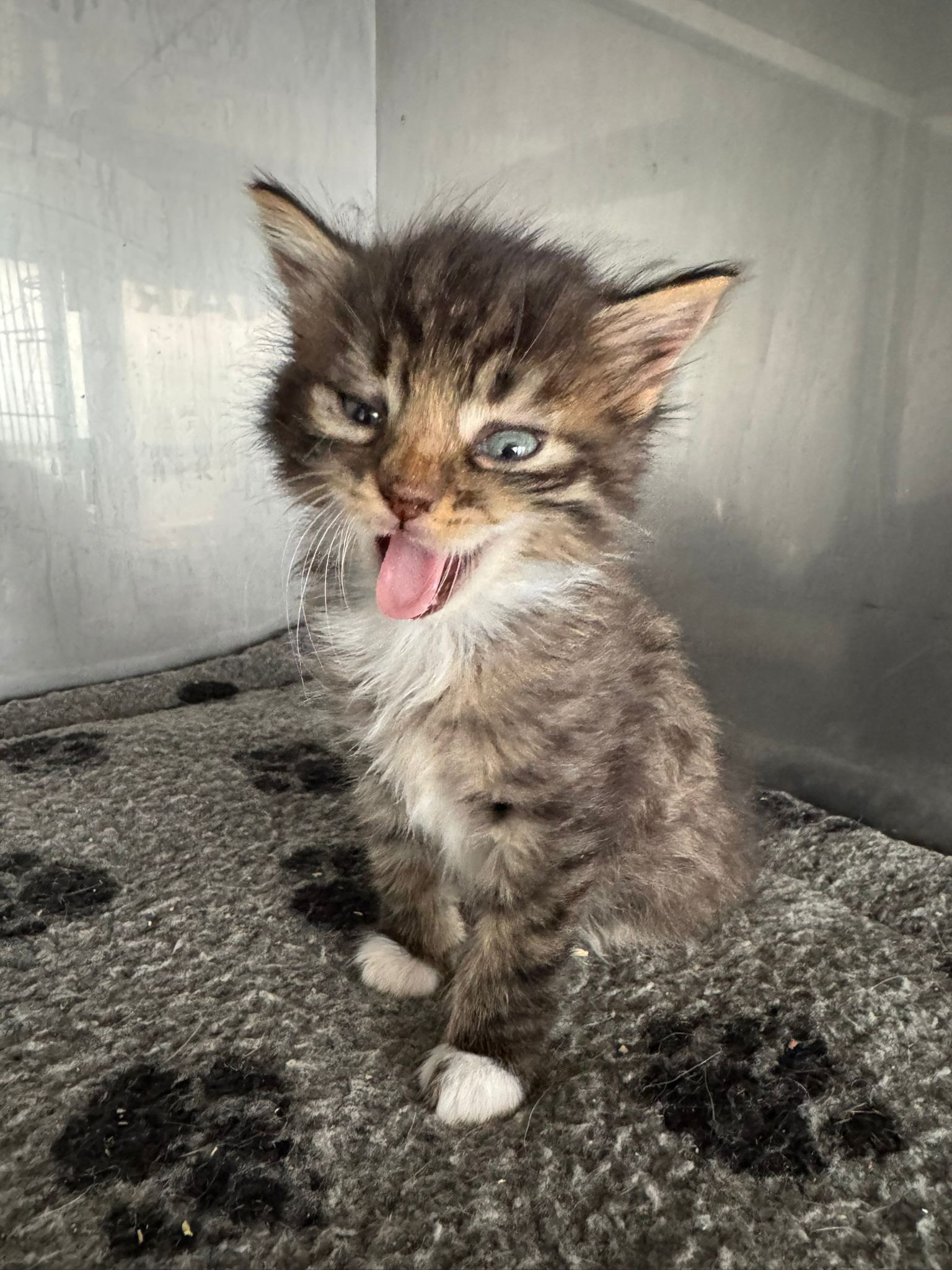 Eigentlich kaum eine Chance aufs Überleben, da die Katzenbabys da erst ca. 5-6 Wochen alt waren, war das Schicksal Mama Belle und ihren Katzenbabys PeeWee, Little Boo und Becks freundlich gestimmt: unsere Tierschützerin, eine Tierärztin mit eigener Praxis, wurde von ihrem Bekannten, der die kleine Familie Anfang August 2025 gefunden hatte, gebeten, die kleine Familie aufzunehmen. Sie sagte ihm zu und so wurden alle 4 eingepackt und zu ihr gebracht.
