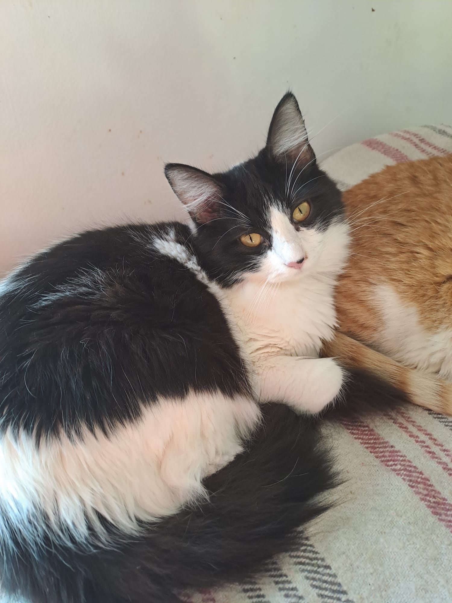 (09.04.2024) sind zwei junge Kätzchen, ein freundliches und neugieriges Geschwisterpaar, das es liebt, zu spielen und die Welt um sich herum zu erkunden. Sie haben bezauberndes schwarz-weißes Fell und sind sehr anhänglich. Beide sind an das Leben in der Wohnung gewöhnt und haben bereits mit anderen Katzen und Hunden zusammengelebt. Sie sind verspielt, sozial und anpassungsfähig, was sie zu einer wunderbaren Bereicherung für jede Familie macht..