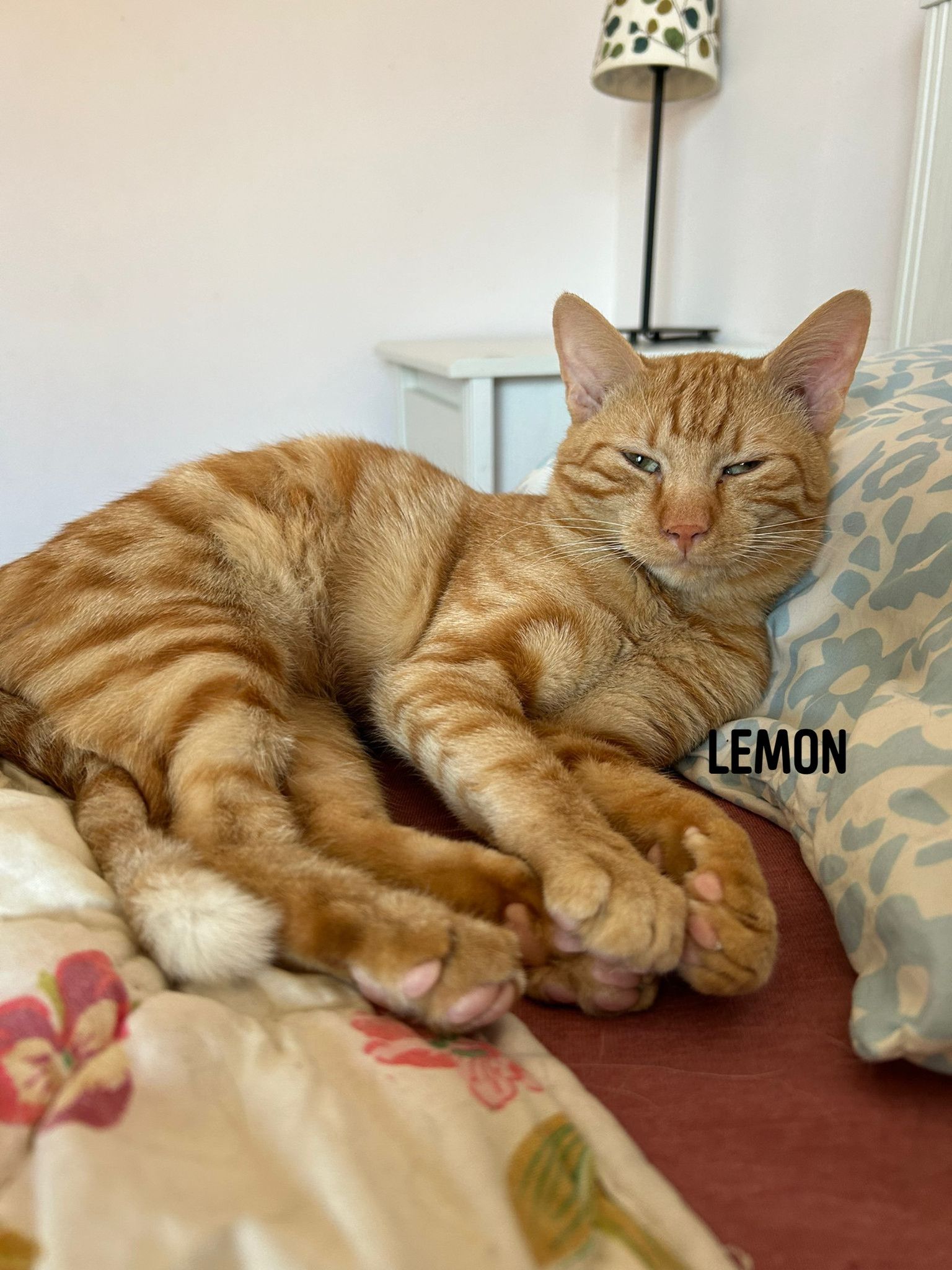Lemon und seine Geschwister wurden von einer wilden Mutter geboren. Auf ihrer Pflegestelle haben sich beide gut an ihren Menschen gewöhnen können, wurden gut sozialisiert und lieben es, bei ihrem Mernschen zu sein.