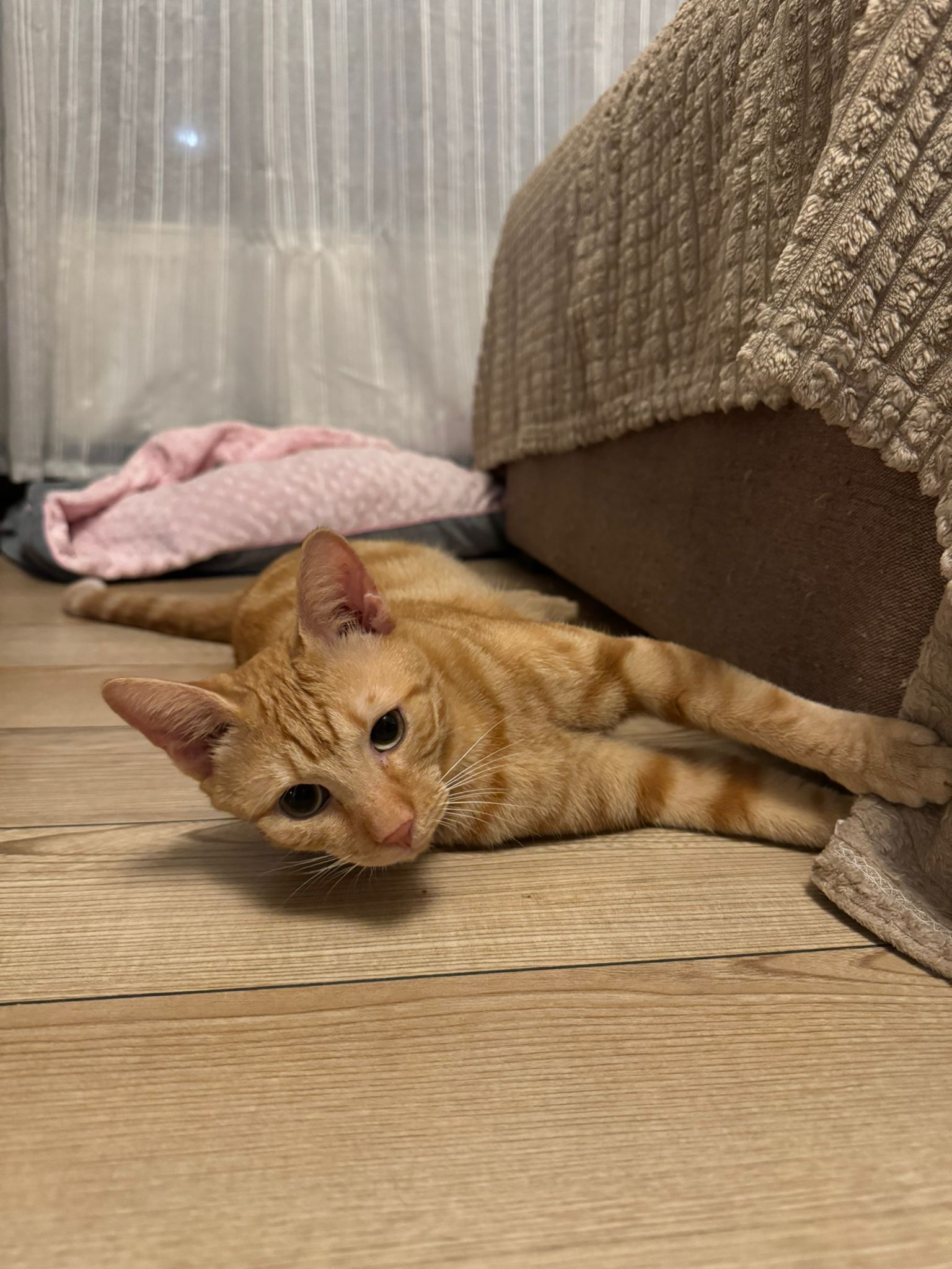 Lemon wurde zusammen mit 6 anderen Geschwistern (einer von ihnen war sehr krank und starb wenige Tage später) während eines Sommersturms im Jahr 2023 gerettet; die Katzenbabies waren nur 2 Monate alt.