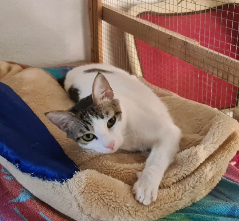 Eigenschaften: braucht anfangs Zeit um anzukommen, dann super lieb, sehr verschmust, verspielt, sehr menschenbezogen, verträglich mit Artgenossen, kennt Hunde, mag Kinder